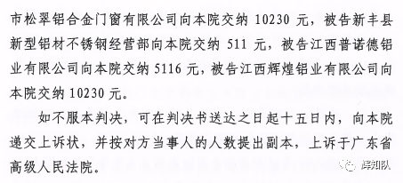 永州凤铝系列维权案:诉辉煌公司等四被告,法院判赔250余万