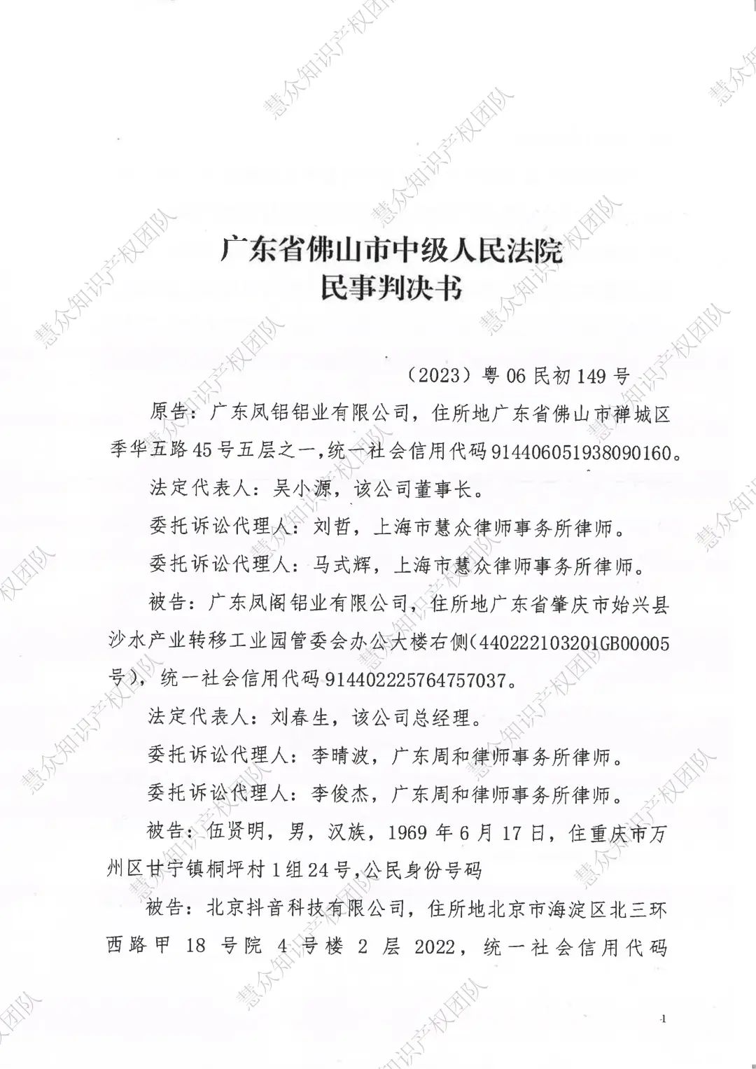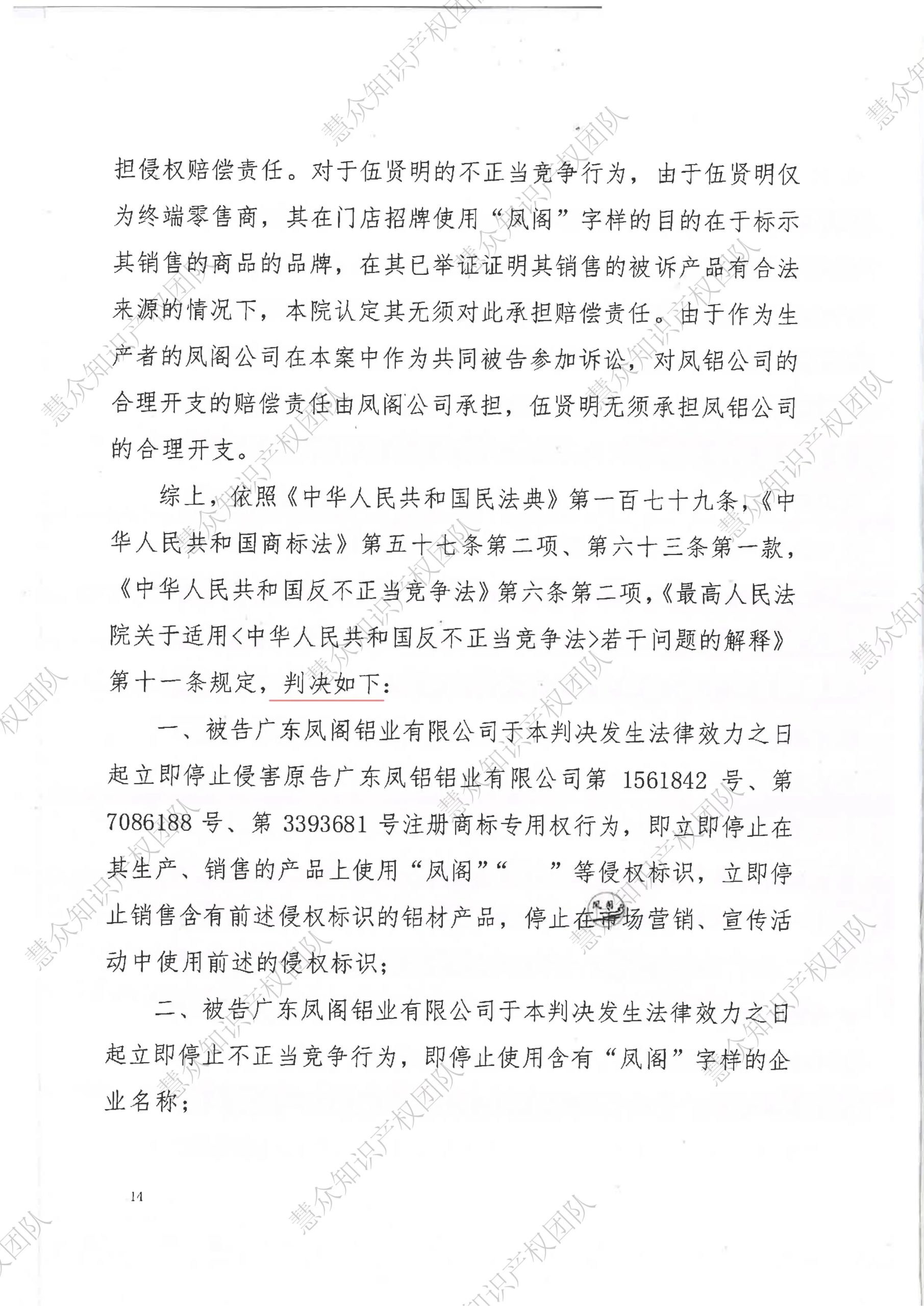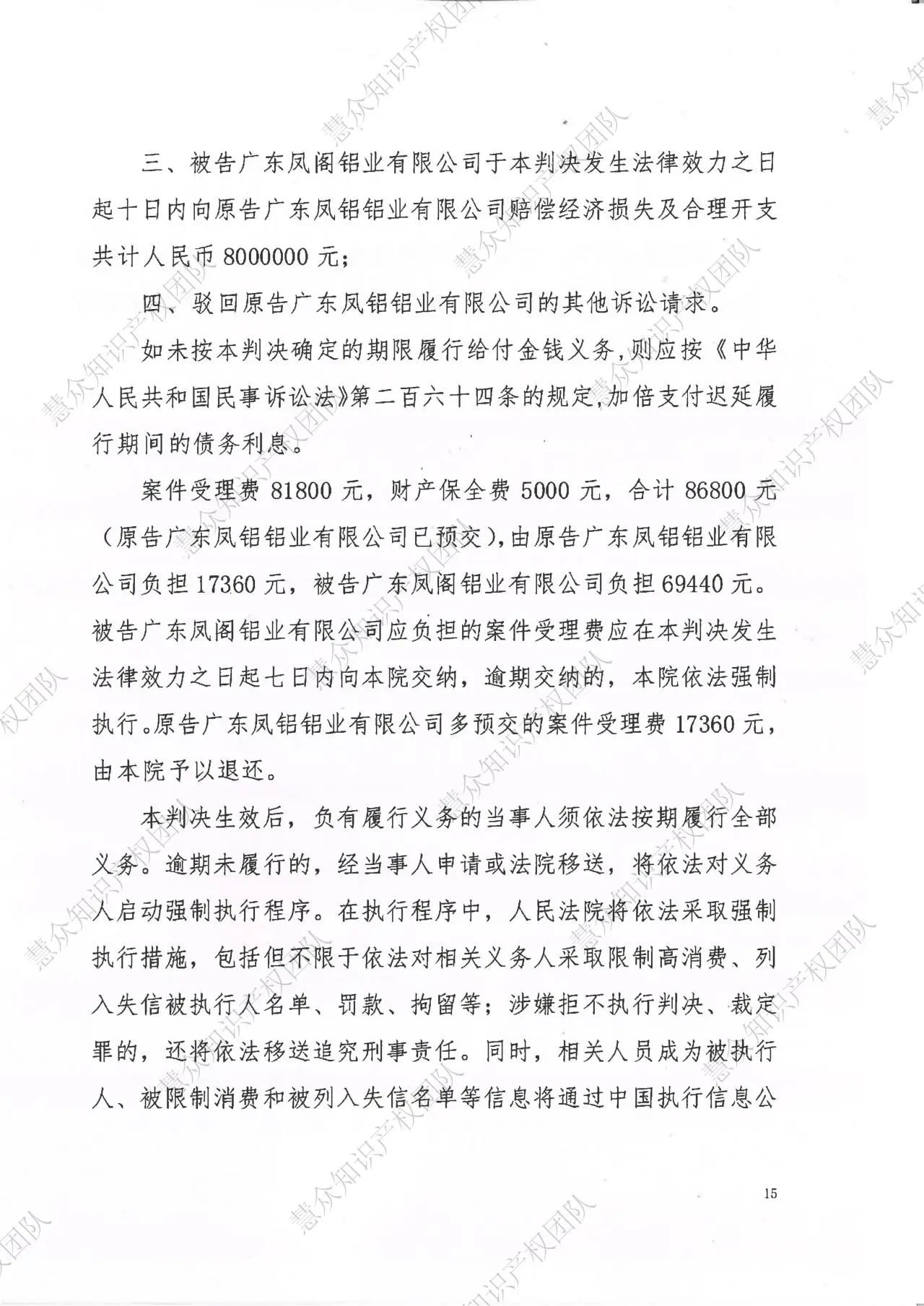 永州判赔800万!辉知队代理“凤铝”商标维权案胜诉